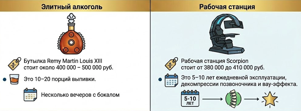 Выбор очевиден: за те же деньги вы можете подарить либо несколько вечеров с бокалом, либо годы здоровой спины и футуристичное рабочее место, которое станет центром домашнего кабинета.